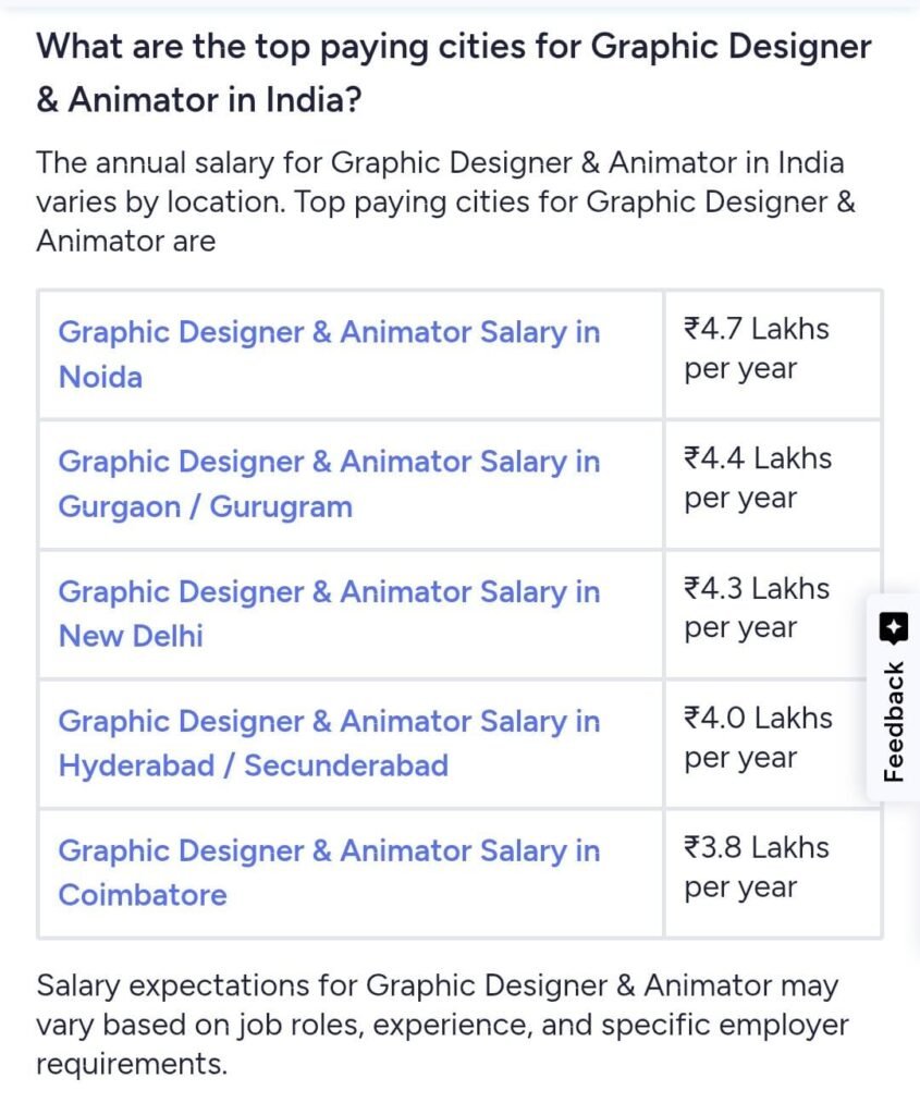 Designers and animators have strong career options in VFX, games, media and advertising. Pay depends on experience, skill (2D vs 3D, VFX, motion graphics), and location. Entry-level pay in India is roughly ₹1.5–3 LPA; experienced artists can earn ₹6–12+ LPA.